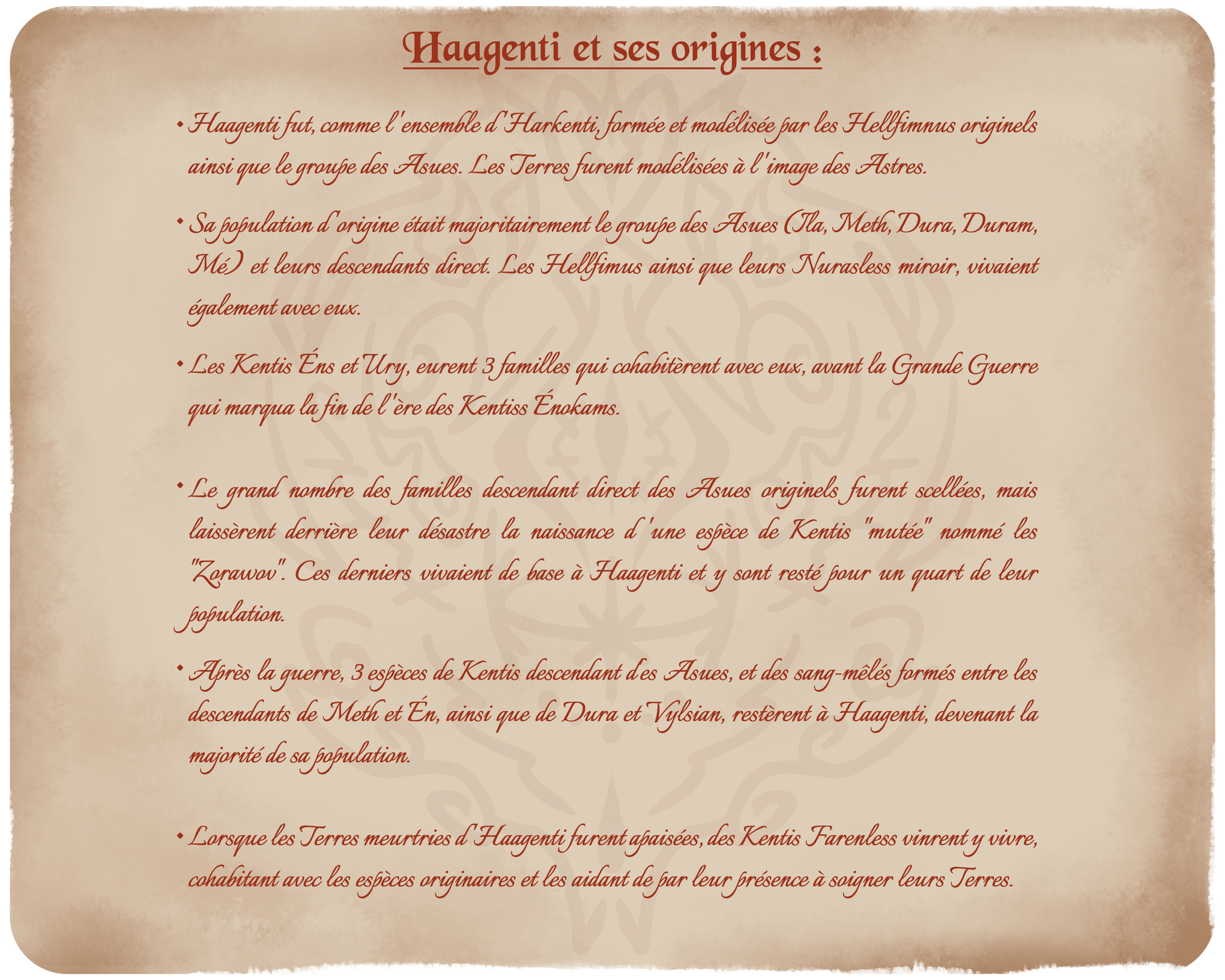 Cette page sera actualisée au fil du temps, avec des nouveaux contenues/informations sur les différentes catégorie de l'univers d'Harkenti